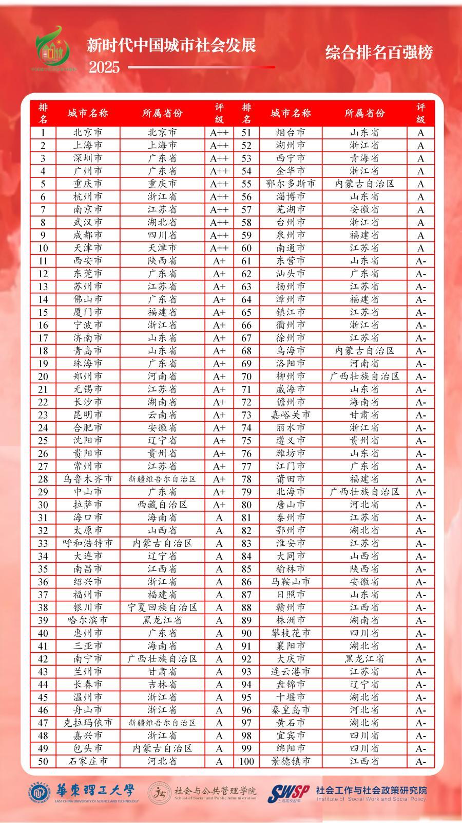 "},"namespaceURI":"http://www.w3.org/1999/xhtml"},"para",{"tagName":"section","attributes":{"style":"margin: 15px 0%;box-sizing: border-box;"},"namespaceURI":"http://www.w3.org/1999/xhtml"},"para",{"tagName":"section","attributes":{"style":"font-size: 15px;line-height: 2;padding: 0px 10px;box-sizing: border-box;"},"namespaceURI":"http://www.w3.org/1999/xhtml"},"para",{"tagName":"p","attributes":{},"namespaceURI":"http://www.w3.org/1999/xhtml"}]">“中国城市社会发展指数研究”课题组近日在沪线上发布“新时代中国城市社会发展指数暨百强榜(2025)”。据悉,该榜单是上海高校智库“华东理工大学社会工作与社会政策研究院”何雪松教授和吴开泽研究员领衔的智库重点研究项目,华东理工大学已连续八年公开发布中国城市社会发展百强榜。