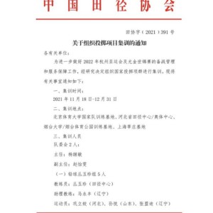 体坛周报全媒体报道 11月15日,中国田径协会官网发布了跳跃、投掷、中跑、跨栏、长跑马拉松等项目2021年底冬训通知,...