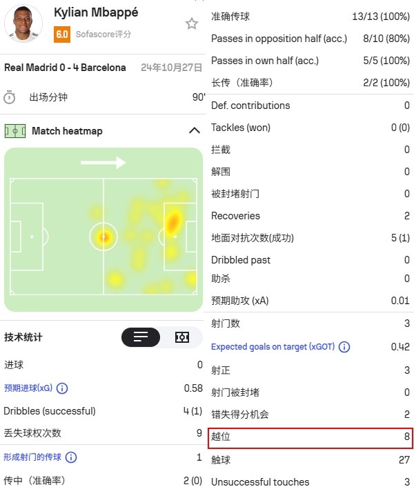 那场比赛,姆巴佩出现了惊人的8次越位。当他一次又一次陷入到弗里克的防守陷阱,也成为了当时皇马最大的难题。