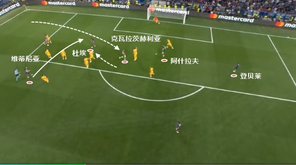 当巴黎两翼和登贝莱有点跑不动时,我们会发现原来巴黎的后腰和中卫(帕乔停赛后)防守能力其实很弱。